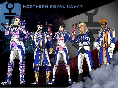 Command the fleet of the Northern Royal Navy (Blue) or the West Shore Pirates (Red). Each faction is comprised of five ships in one of 3 ship classes: